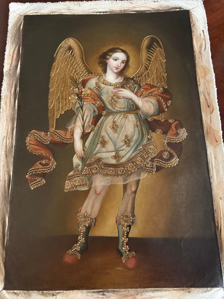 Each of our paintings is entirely handmade, using traditional oil on canvas by Peruvian Catholic artists. Their work reflects the devotion, skill, and spiritual tradition passed down through generations, inspired by the legacy of the Cusco School of Art—a blend of European sacred themes and Andean artistry.