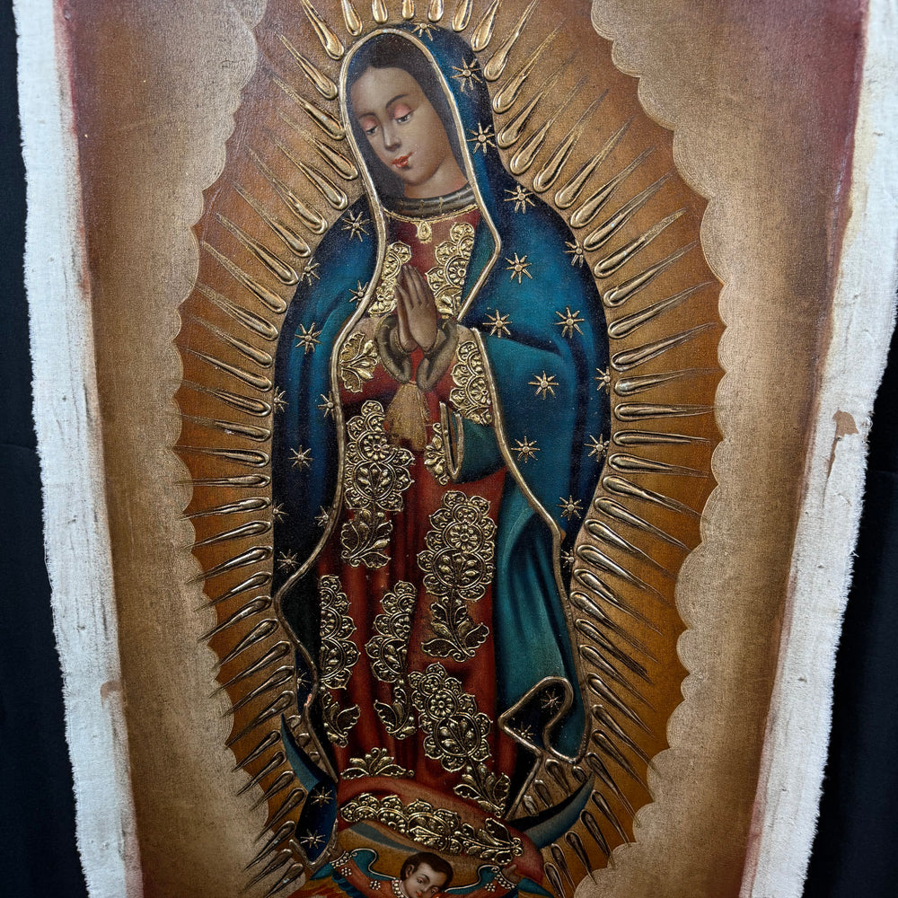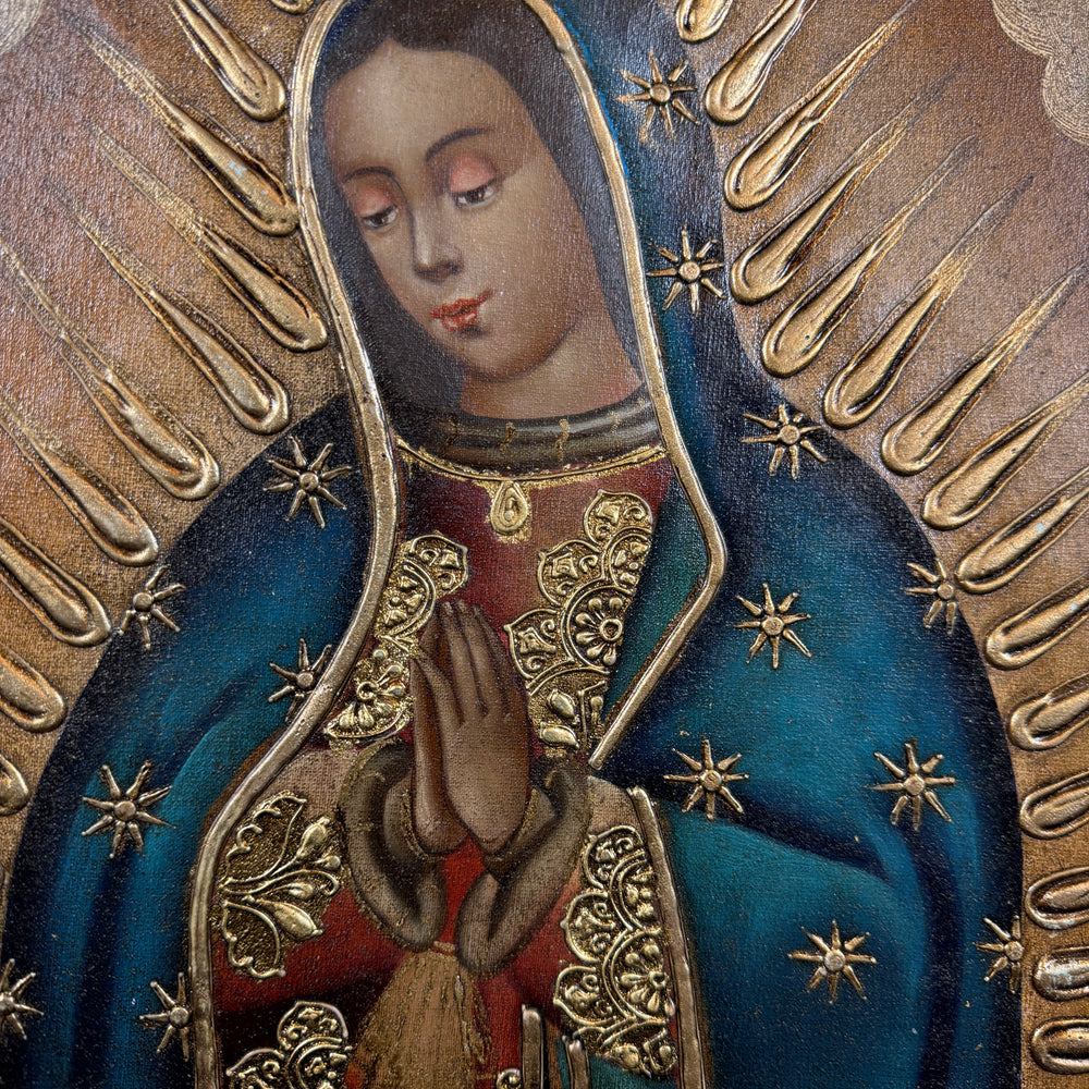 On December 12, when Juan Diego opened his tilma in the bishop’s presence, the roses fell to the ground, and the bishop sank to his knees. On the tilma where the roses had been appeared an image of Mary exactly as she had appeared at the hill of Tepeyac.