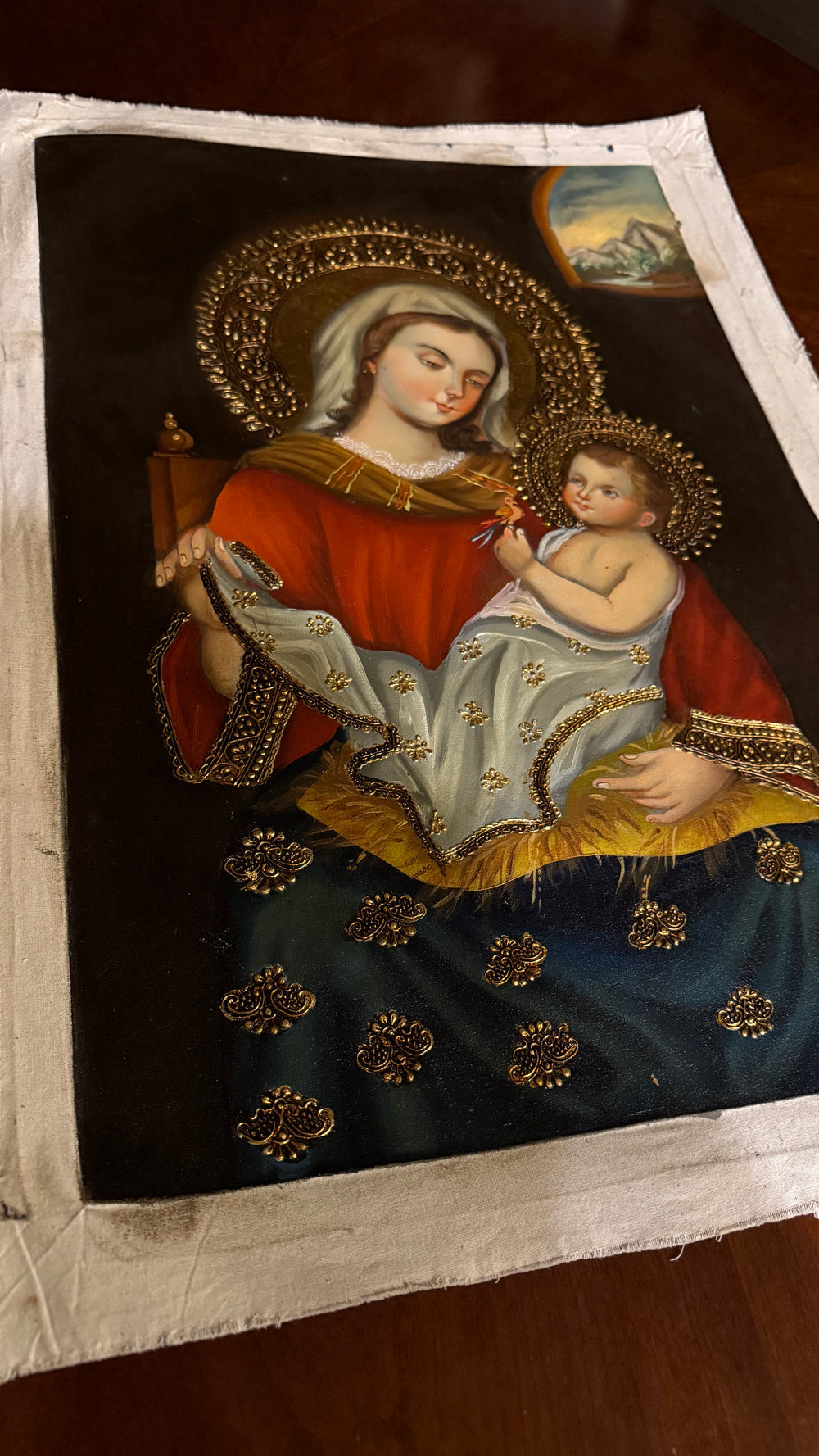 Madonna and Child — 16×24” Original Hand-Painted Oil Painting (Cusco School Style)