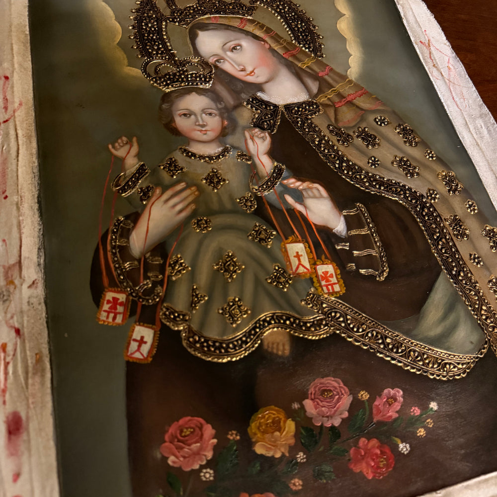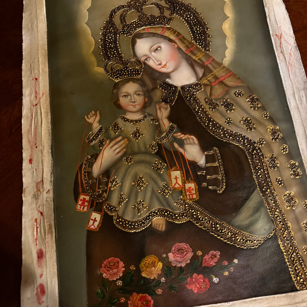 Our Lady of Mount Carmel — 16×24” Original Hand-Painted Oil Painting (Cusco School Style)