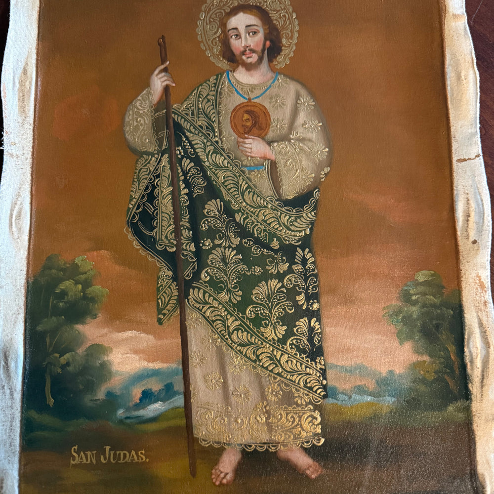 Saint Jude — 12×16” Original Hand-Painted Oil Painting (Cusco School Style)