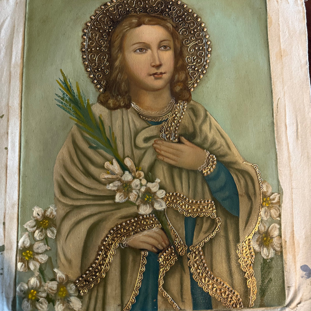 Saint Maria Goretti — 12×16” Original Hand-Painted Oil Painting (Cusco School Style)