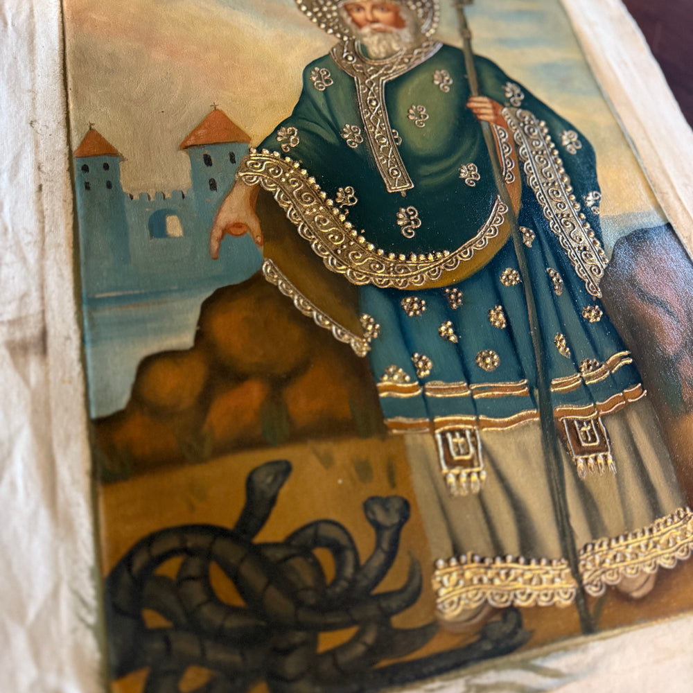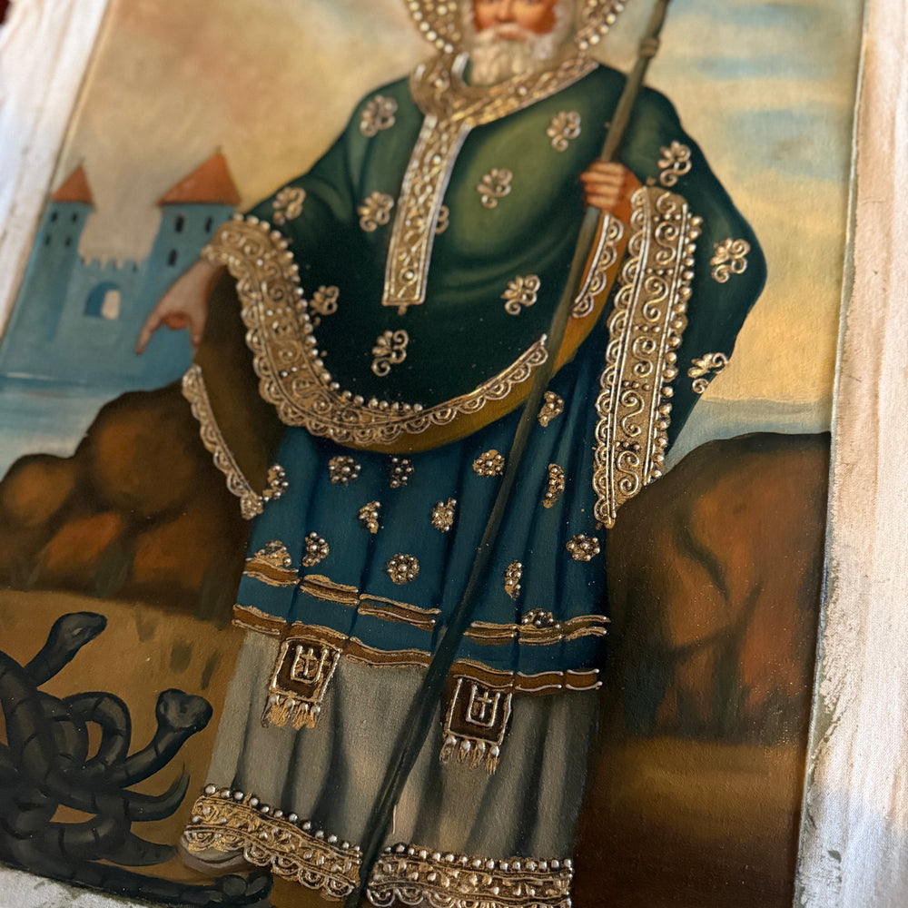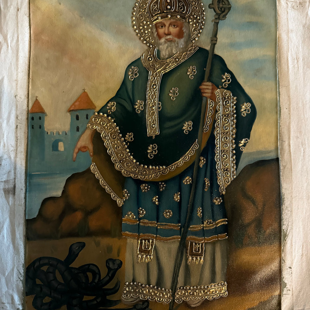 Saint Patrick — 12×16” Original Hand-Painted Oil Painting (Cusco School Style)