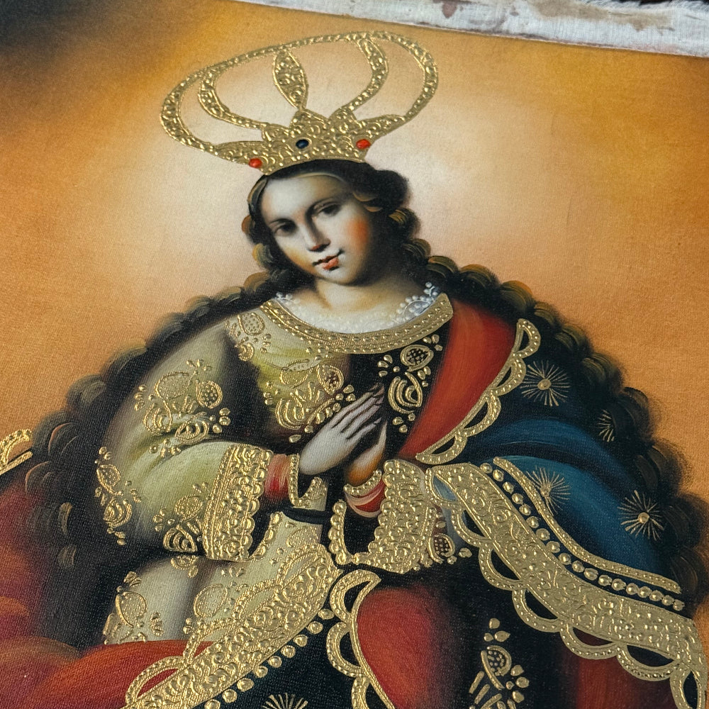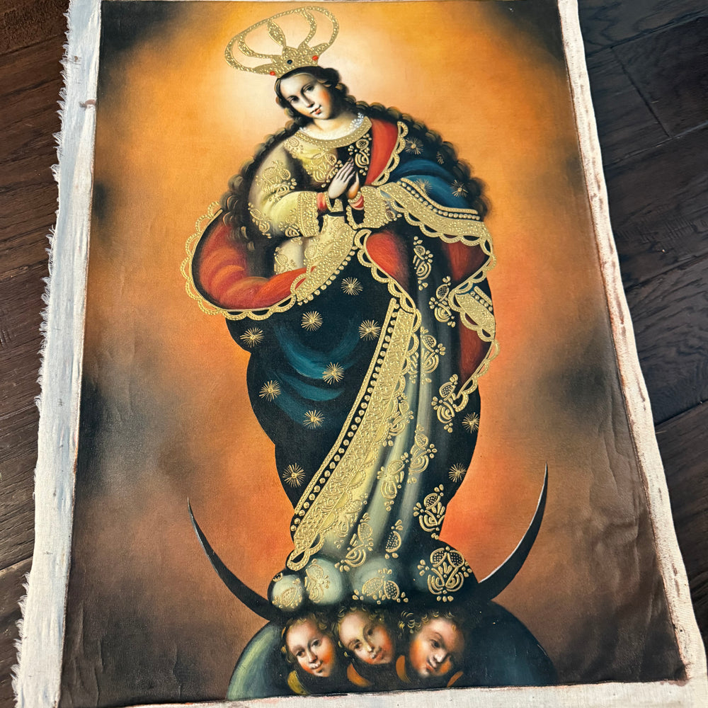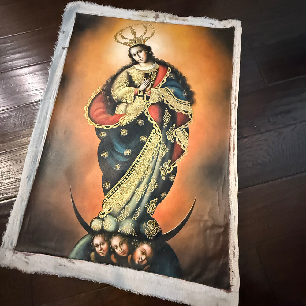 The Immaculate Conception — 20×28” Original Hand-Painted Oil Painting (Cusco School Style)