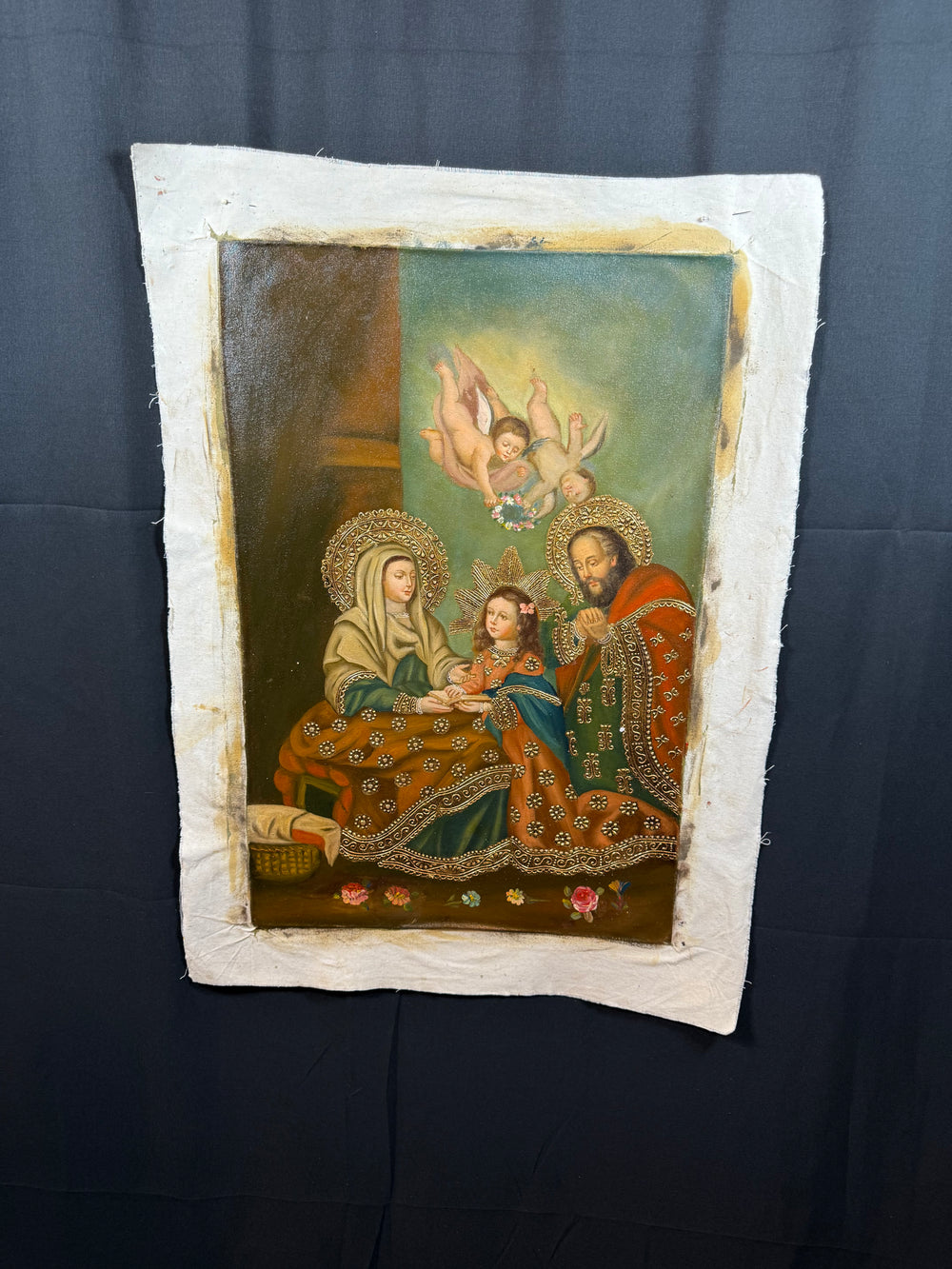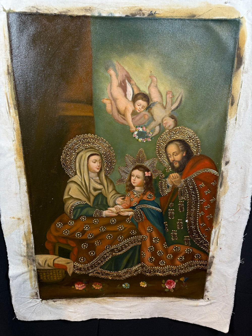 Saints Anne and Joachim with Saint Mary — 16×24” Original Oil Painting (Cusco School of Art)
