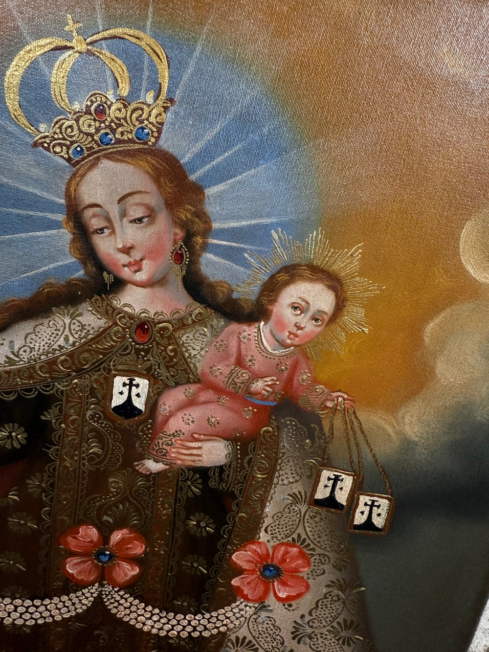• Cusco School of Art style with ornate gold accents